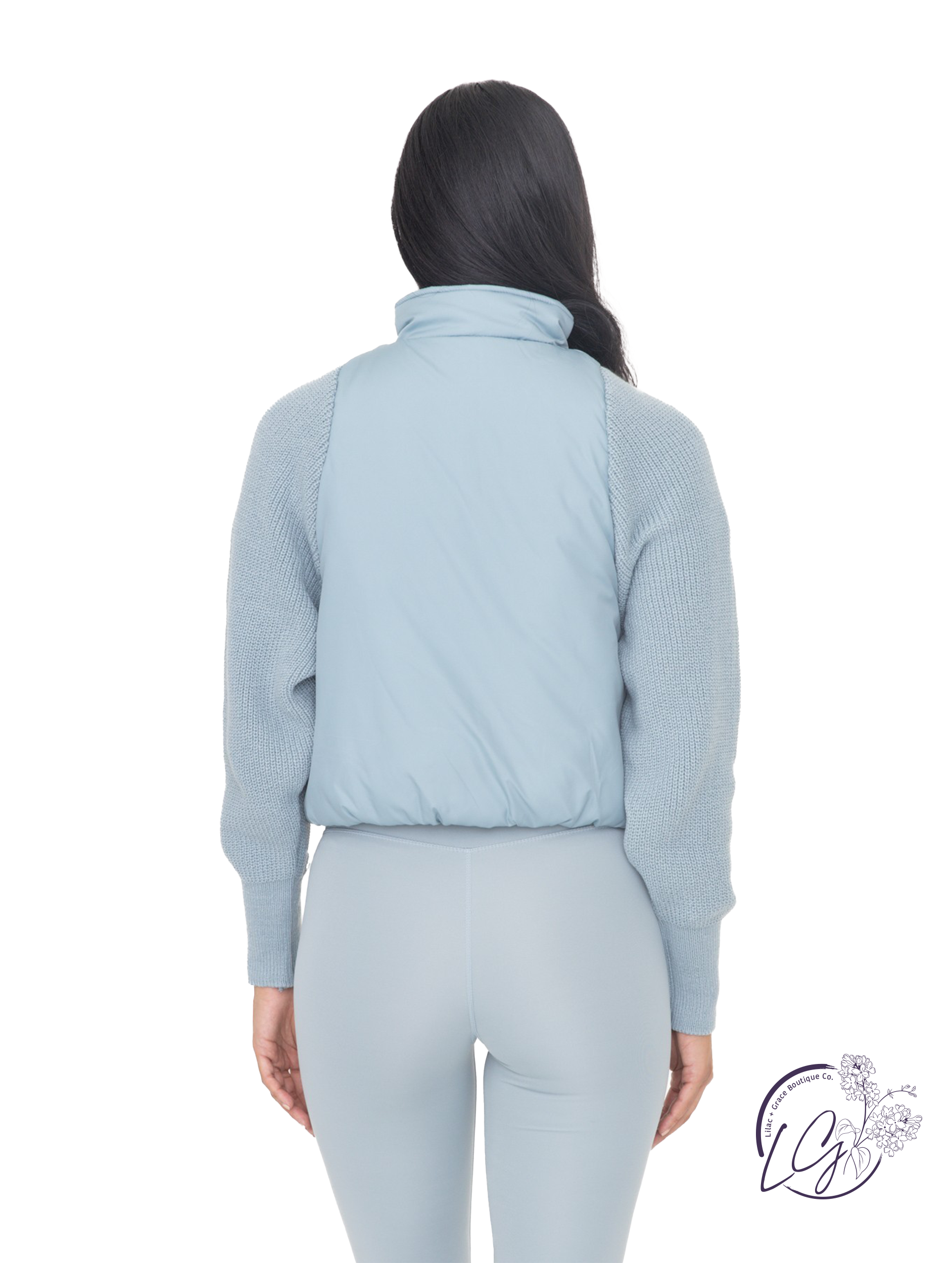 Elevate your style and conquer any challenge with our Won't Beat Me Hybrid Sweater. The unique texture of knit body, nylon woven trim, and padded front is both fashionable and functional. With a high neck, full zip, raglan sleeves, and hand pockets, this is the ultimate blend of style and performance.