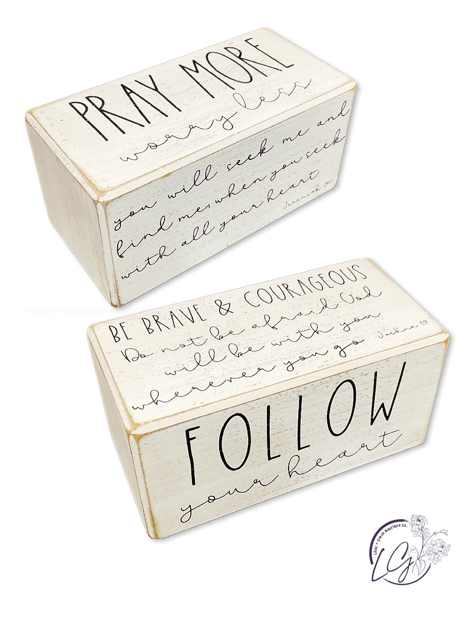 Add these wood four sided inspirational block signs to your abode that definitely grabs attention and spreads positivity.
