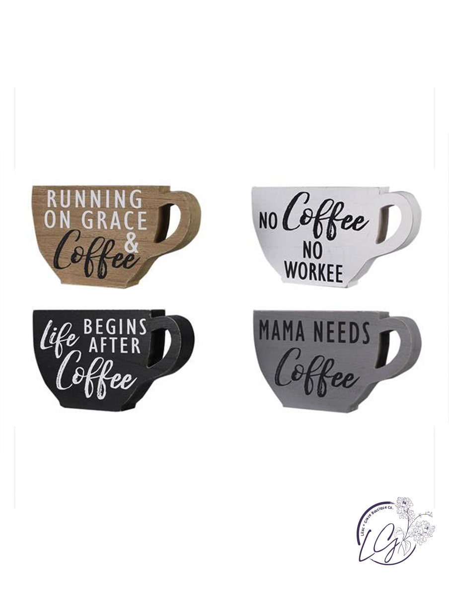 - Wood Coffee Shaped Tabletop Sign that comes in 4 Assortments