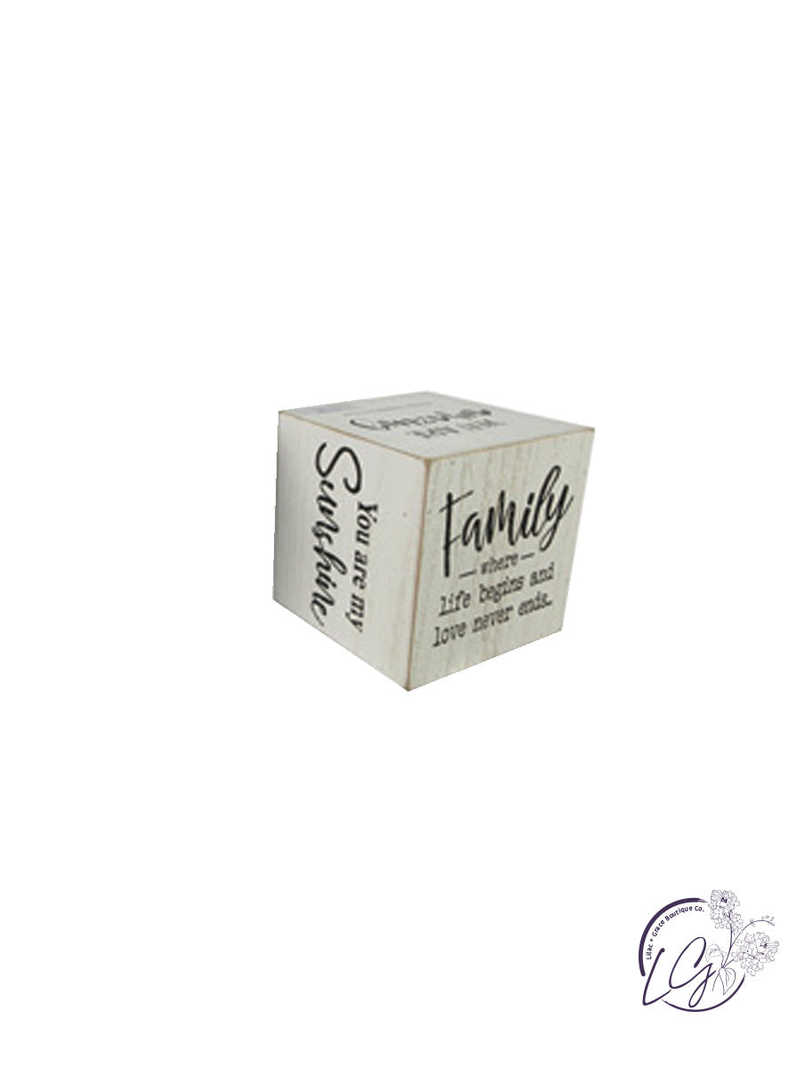 - Full graphic text on all sides: Family where life begins and love never ends, You are my sunshine, Believe in yourself, Bless our home