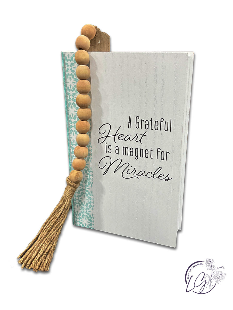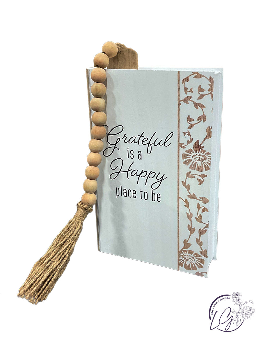 WOOD TABLETOP FAUX BOOKS WITH BLESSING BEAD BOOKMARK