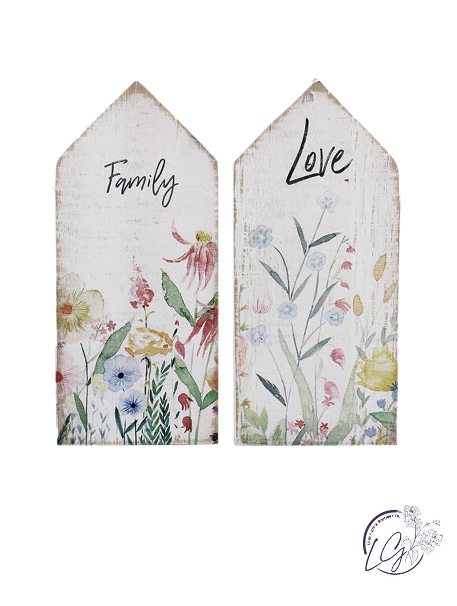 - Full graphic text on 2 signs: Family, Love