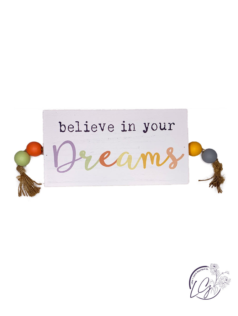WOOD TABLETOP/WALL SIGN WITH BEADS AND TASSEL