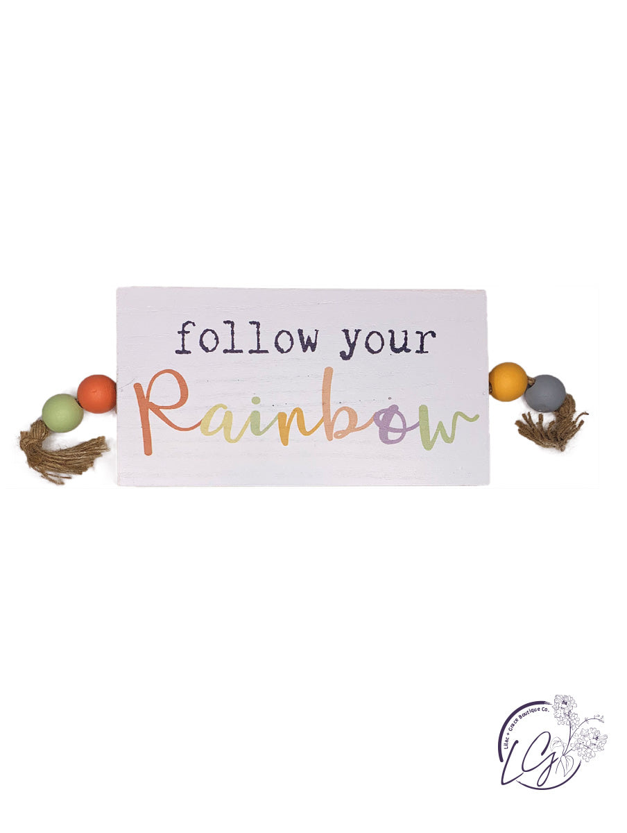 Let daily inspiration land on the bare walls or countertops of your living room, entryway or bedroom with the delicate colors of rainbow design with charming tassel and bead side accents.